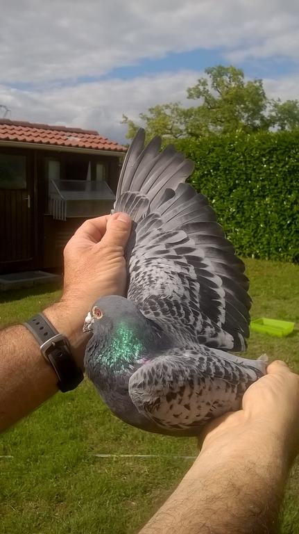 Ce pigeon n'est pas un inconnu pour ceux qui suivent un peu les choses en grand-fond dans nos régions : il avait enlevé une extraordinaire victoire sur Osnabrück 2013, en étant s'il vous plait, avec son demi-frère, les deux seuls pigeons à franchir la barre des 1000 mpm. C'est aussi la marque des pigeons supérieurs, être présent par vent poussant ou vent de tête.