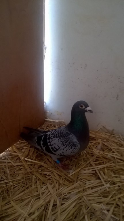 Ce petit pigeon, pas vraiment (il faut le dire) extraordinaire en main a un caractère spécial ; toujours vif et joyeux, il est un des fleurons de la colonie de Patrick en grandes distances. Ses résultats des années précédentes lui valent différentes distinctions : tout d'abord le titre de 1er As pigeon Osnabrück 2013-2014-2015, mais il est aussi 3ème As Osnabrück 2014-2015, 3ème As Amsterdam-Assen 2015. Qui ne voudrait pas d'une telle perle dans ses installations ? Notez cependant que ce gagneur est pourvu de muscles très souples et d'un tempérament certain.